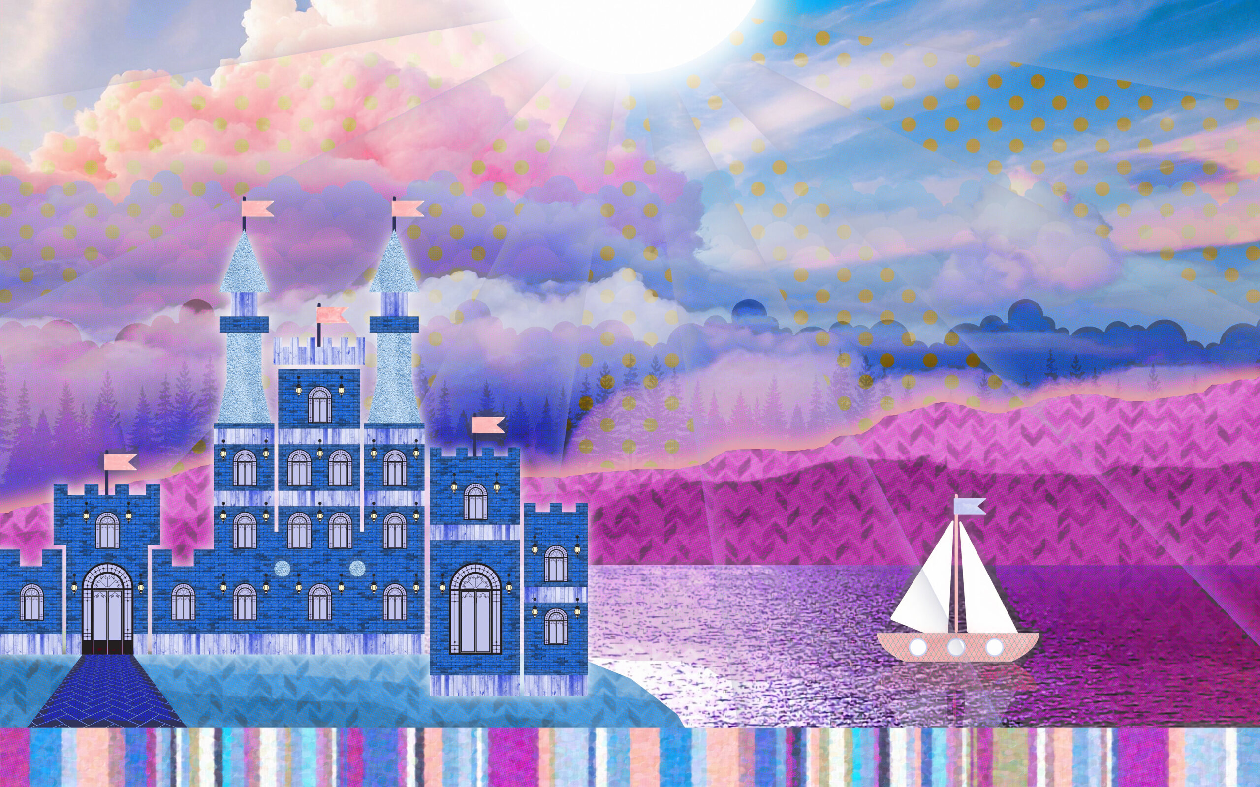 A whimsical imagined landscape where color, architecture, and light float free of gravity.