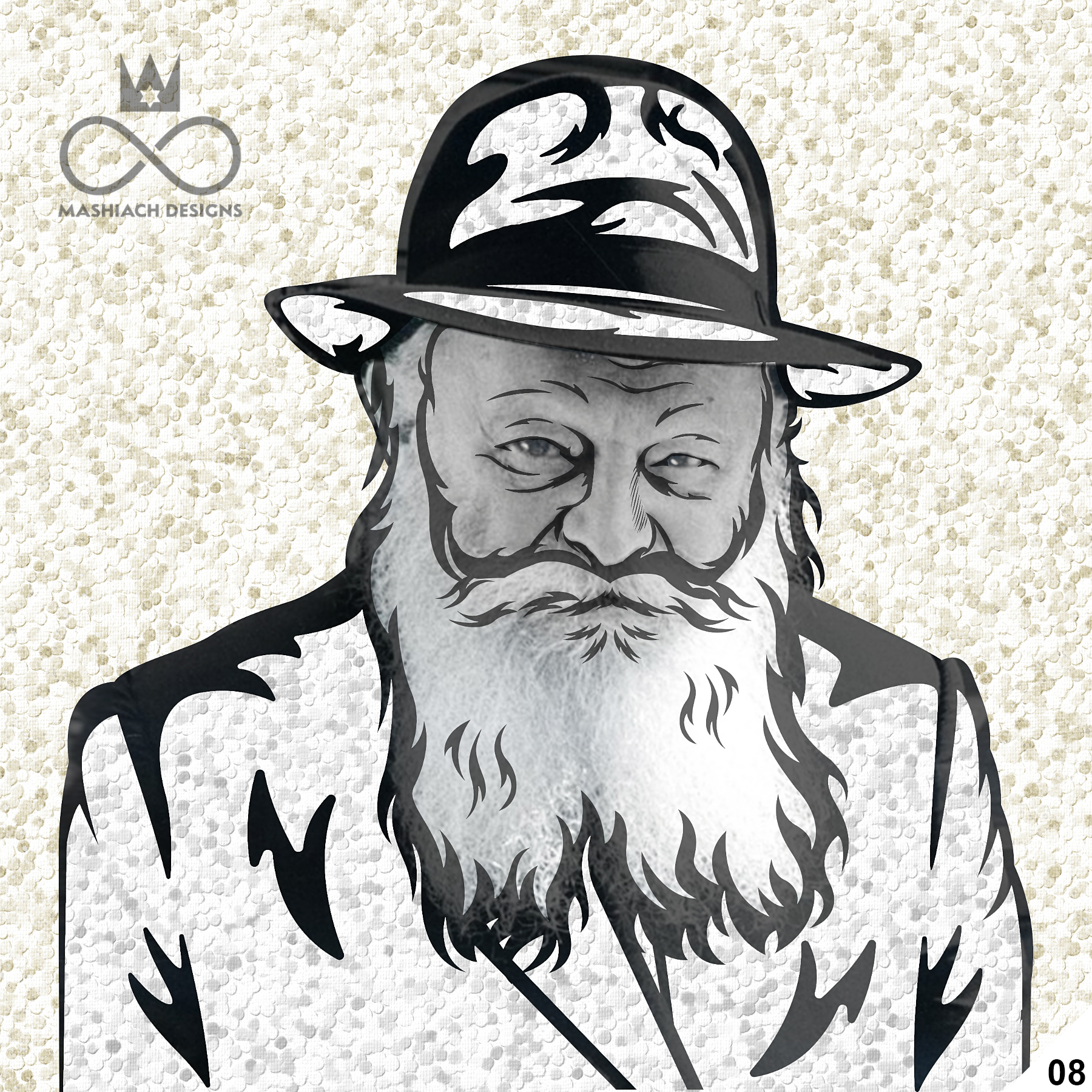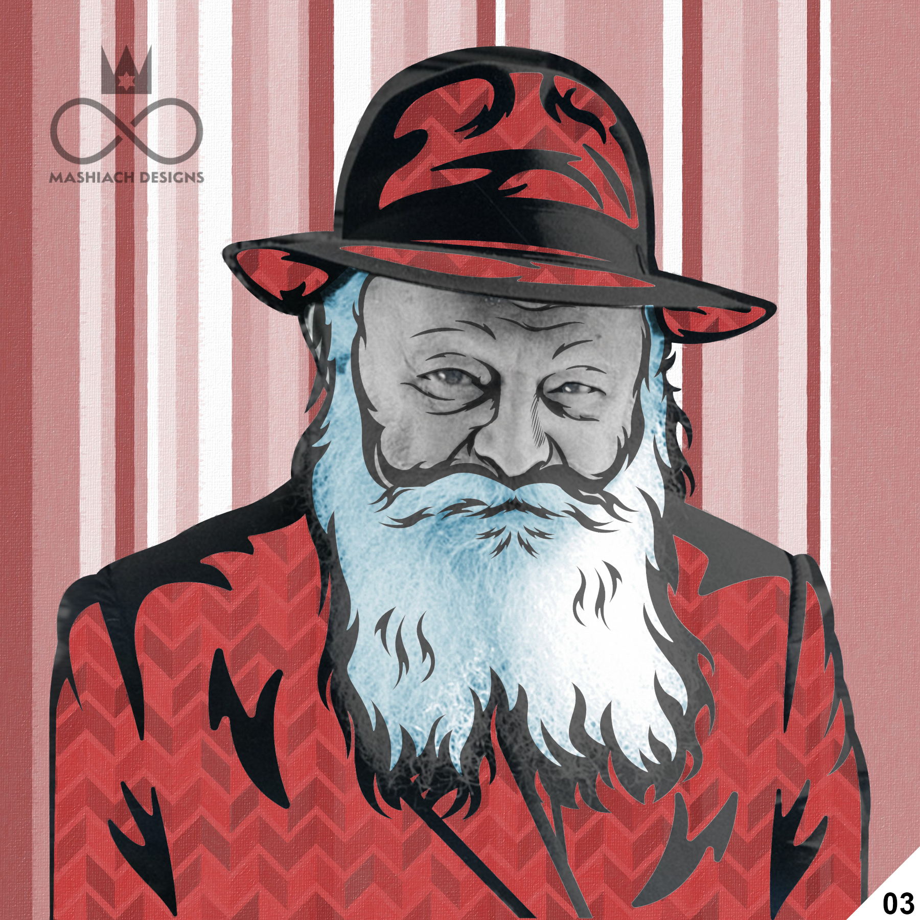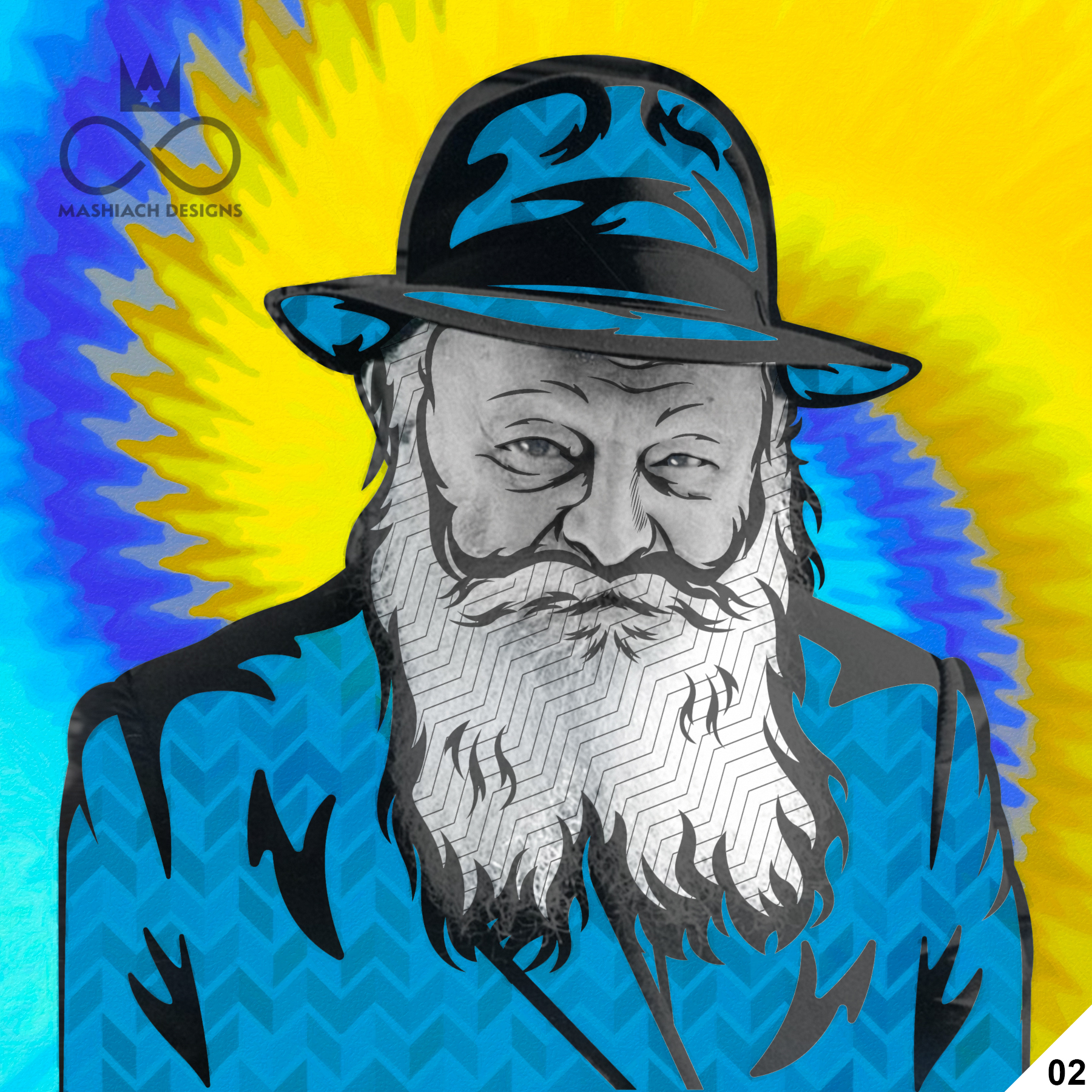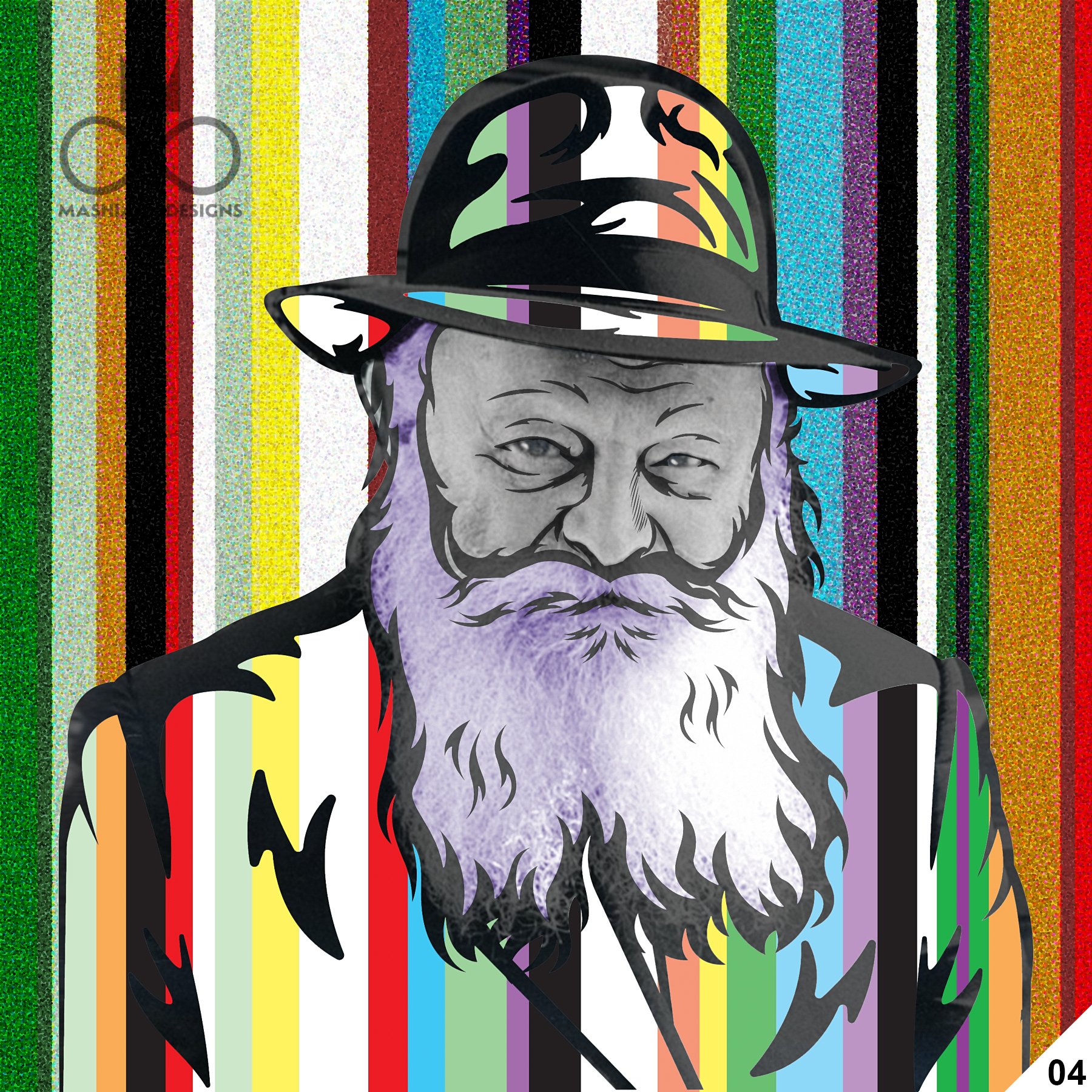 This series reimagines the Rebbe through repetition, color, and variation, echoing the visual language of pop art while rejecting exclusivity. Each image is the same and different at once, familiar yet transformed through pattern, texture, and palette.