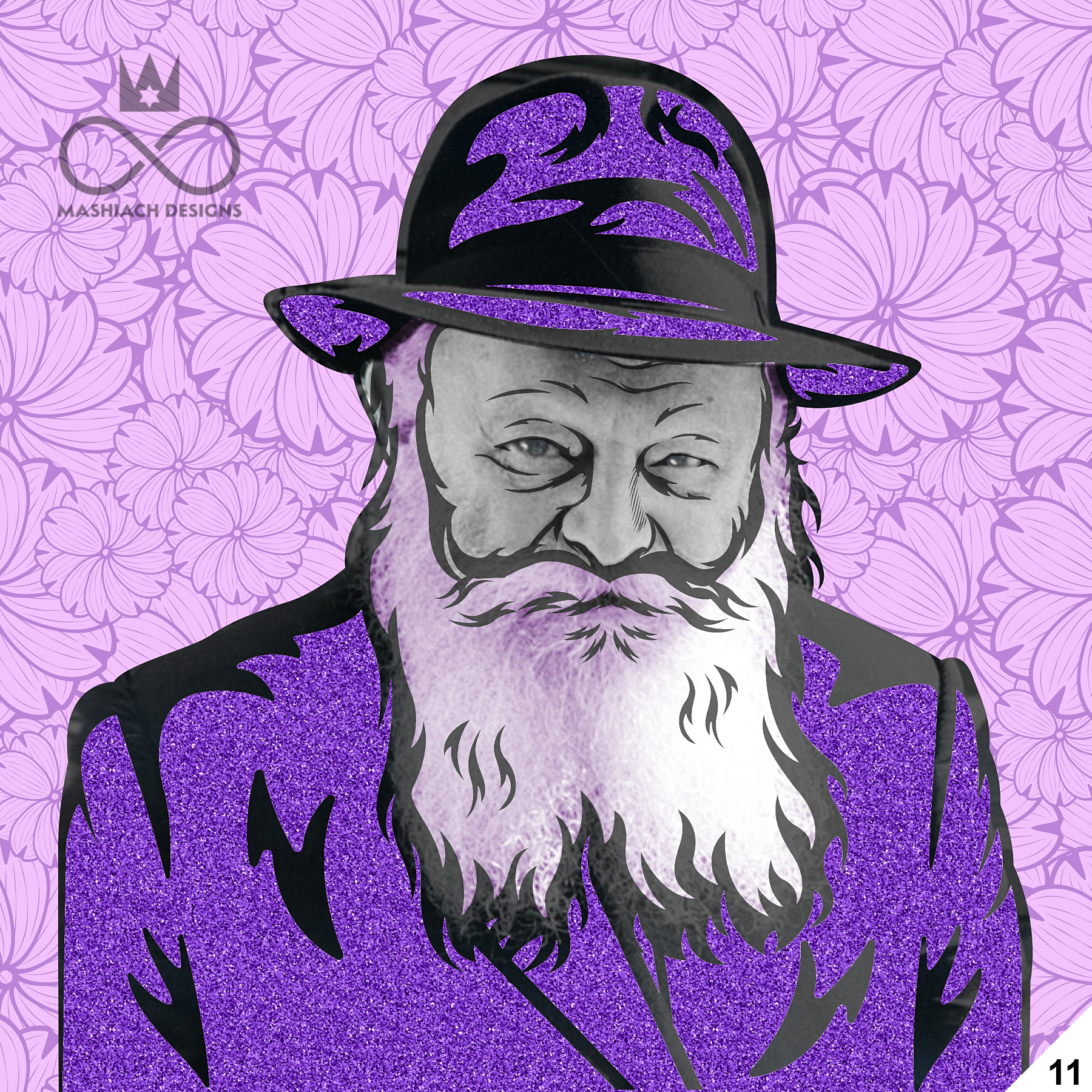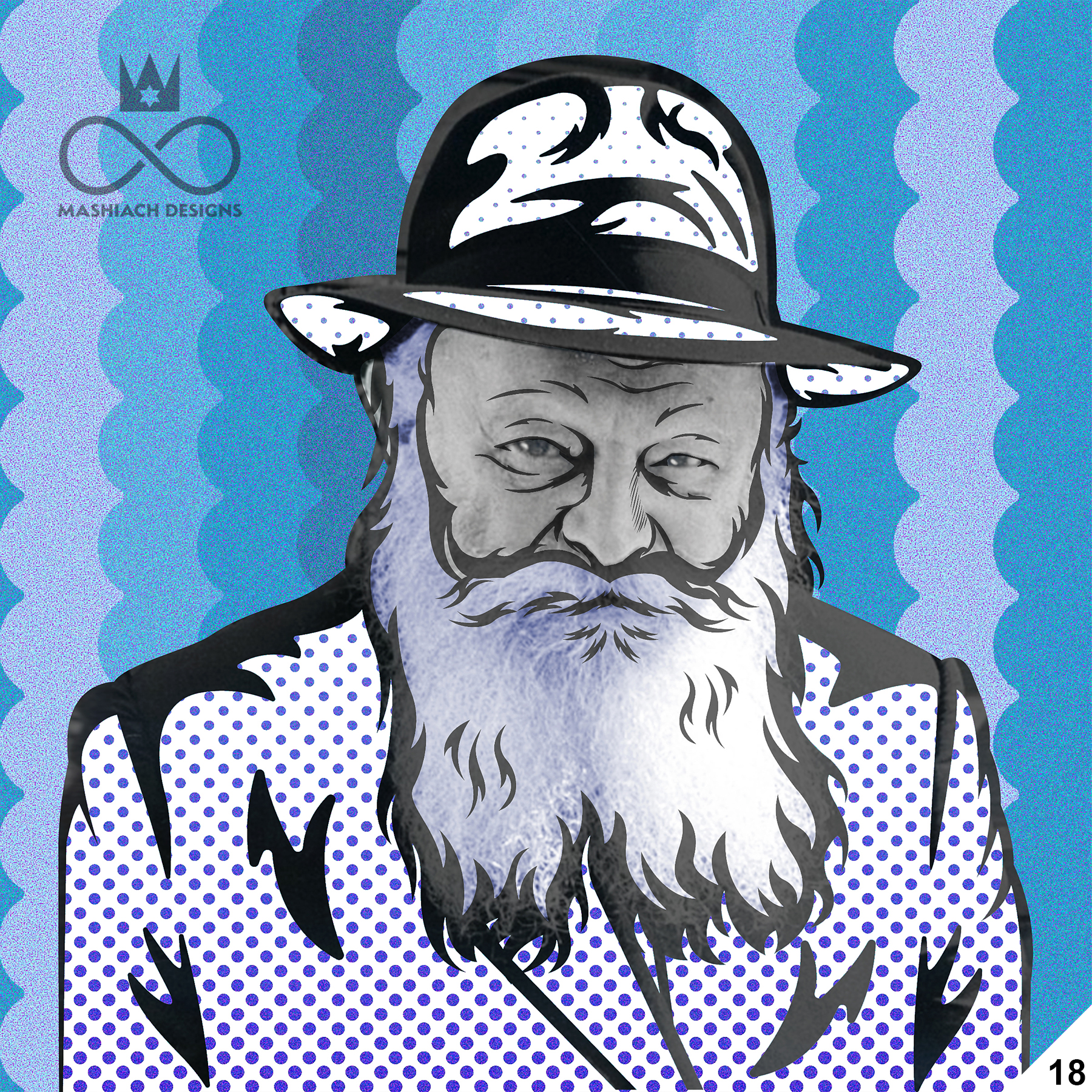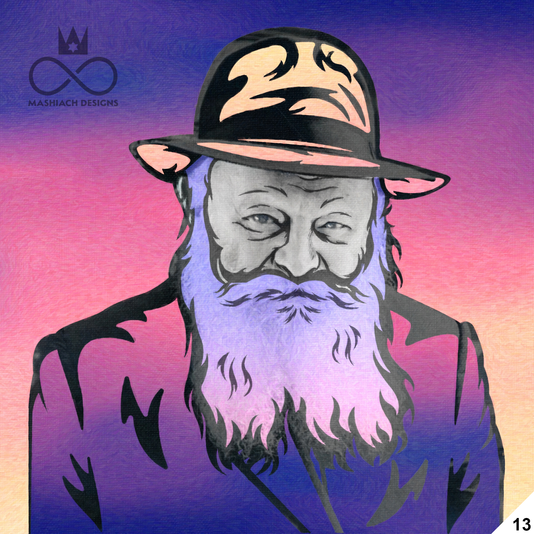 This series reimagines the Rebbe through repetition, color, and variation, echoing the visual language of pop art while rejecting exclusivity. Each image is the same and different at once, familiar yet transformed through pattern, texture, and palette.