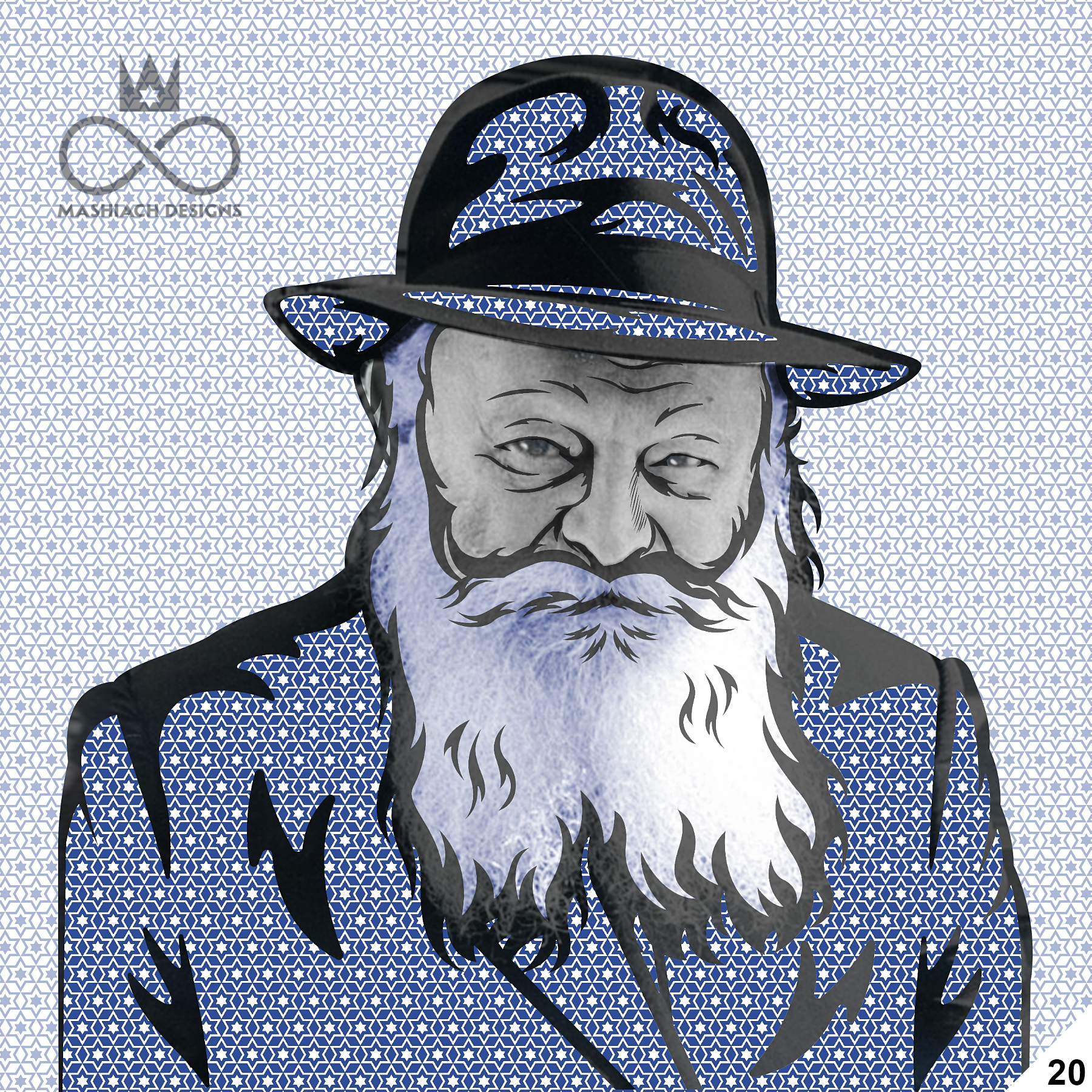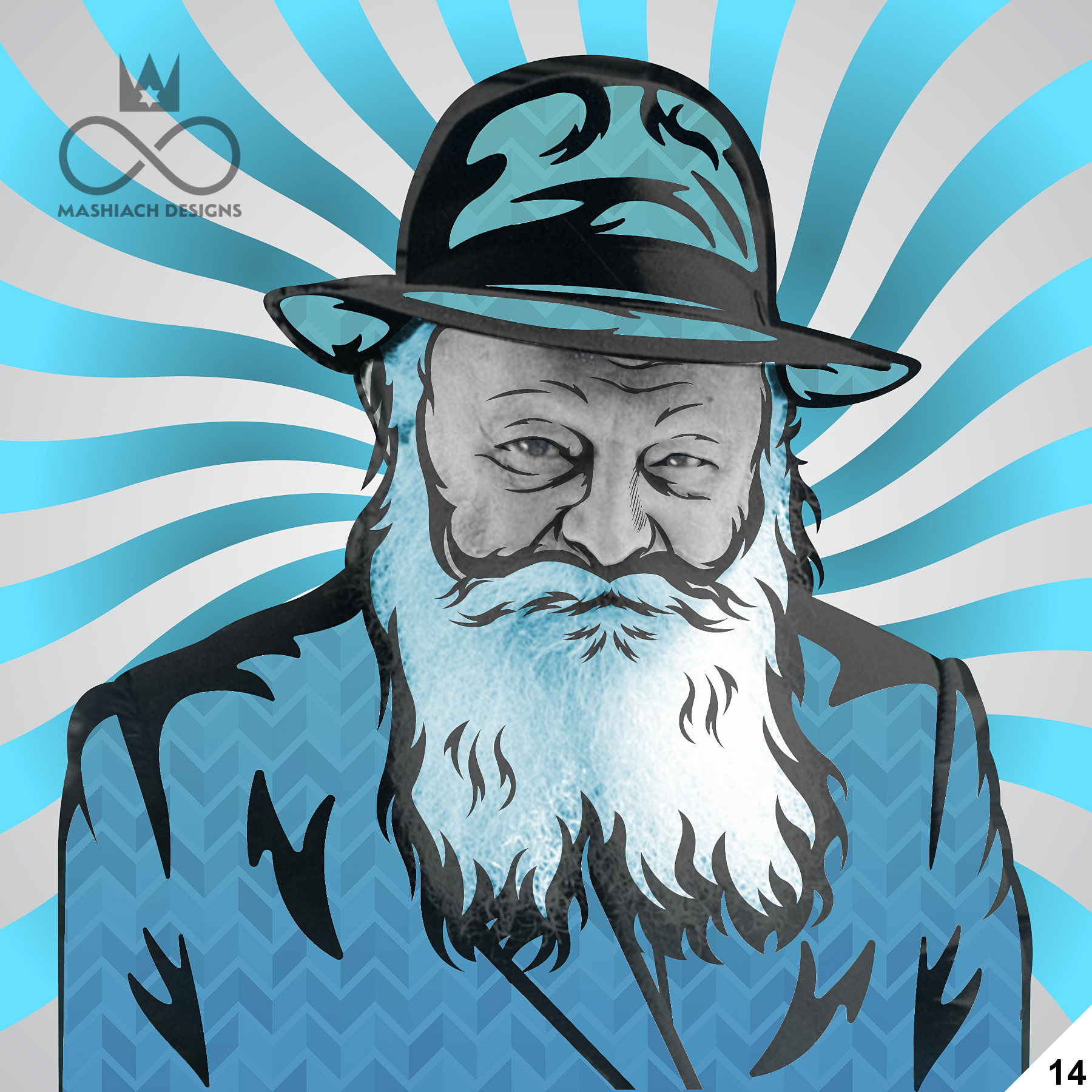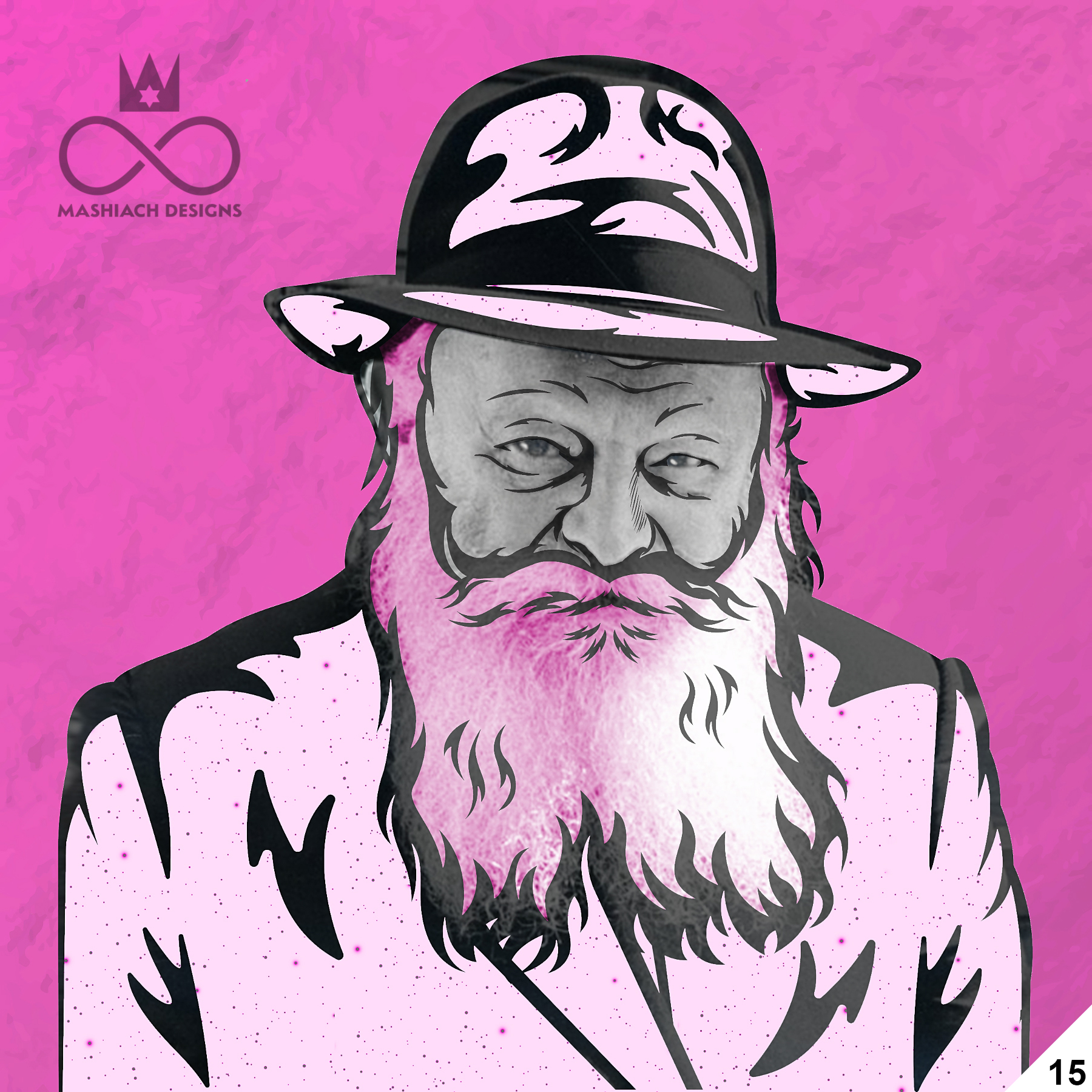 This series reimagines the Rebbe through repetition, color, and variation, echoing the visual language of pop art while rejecting exclusivity. Each image is the same and different at once, familiar yet transformed through pattern, texture, and palette.