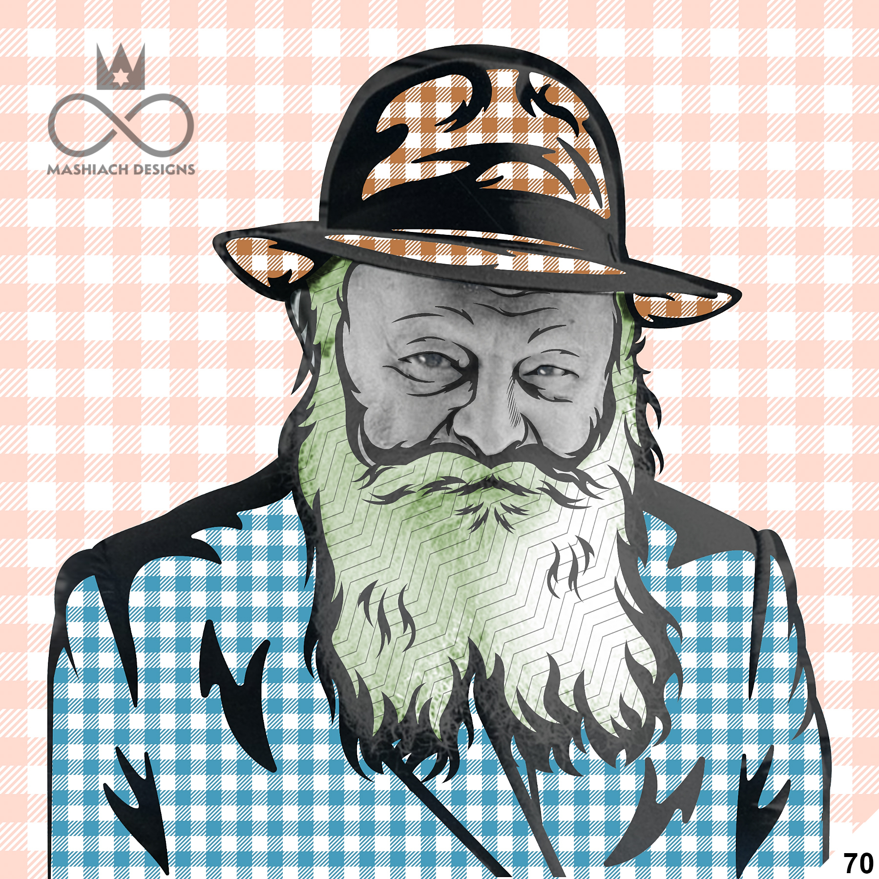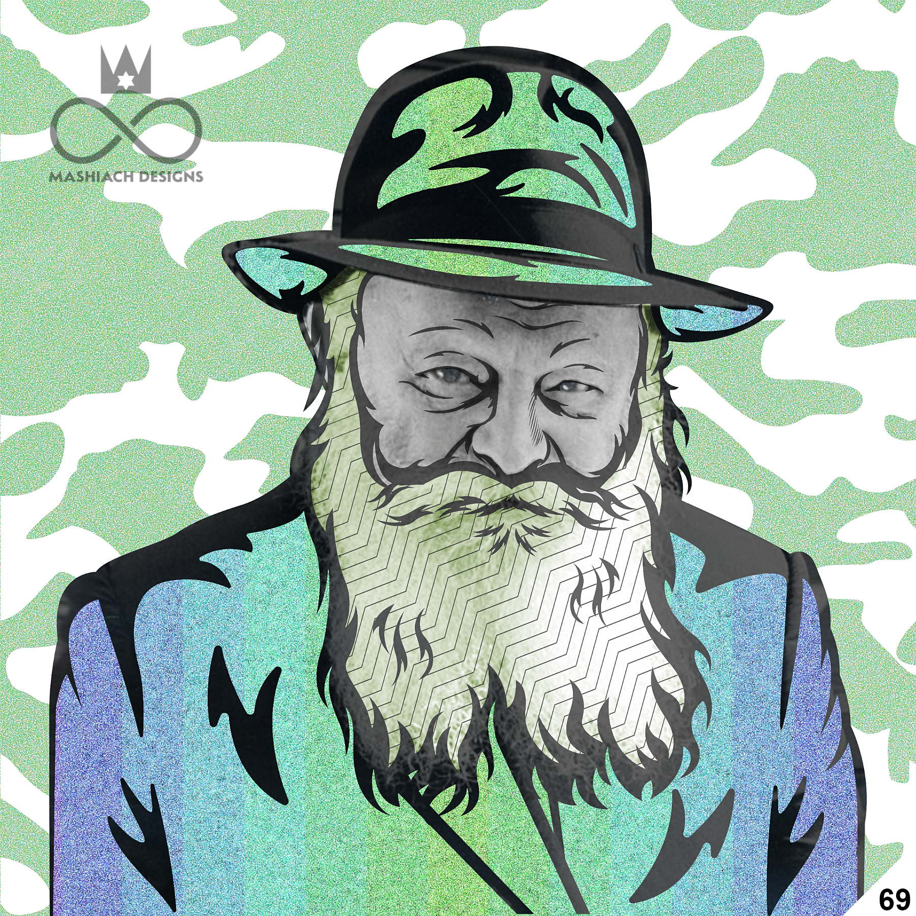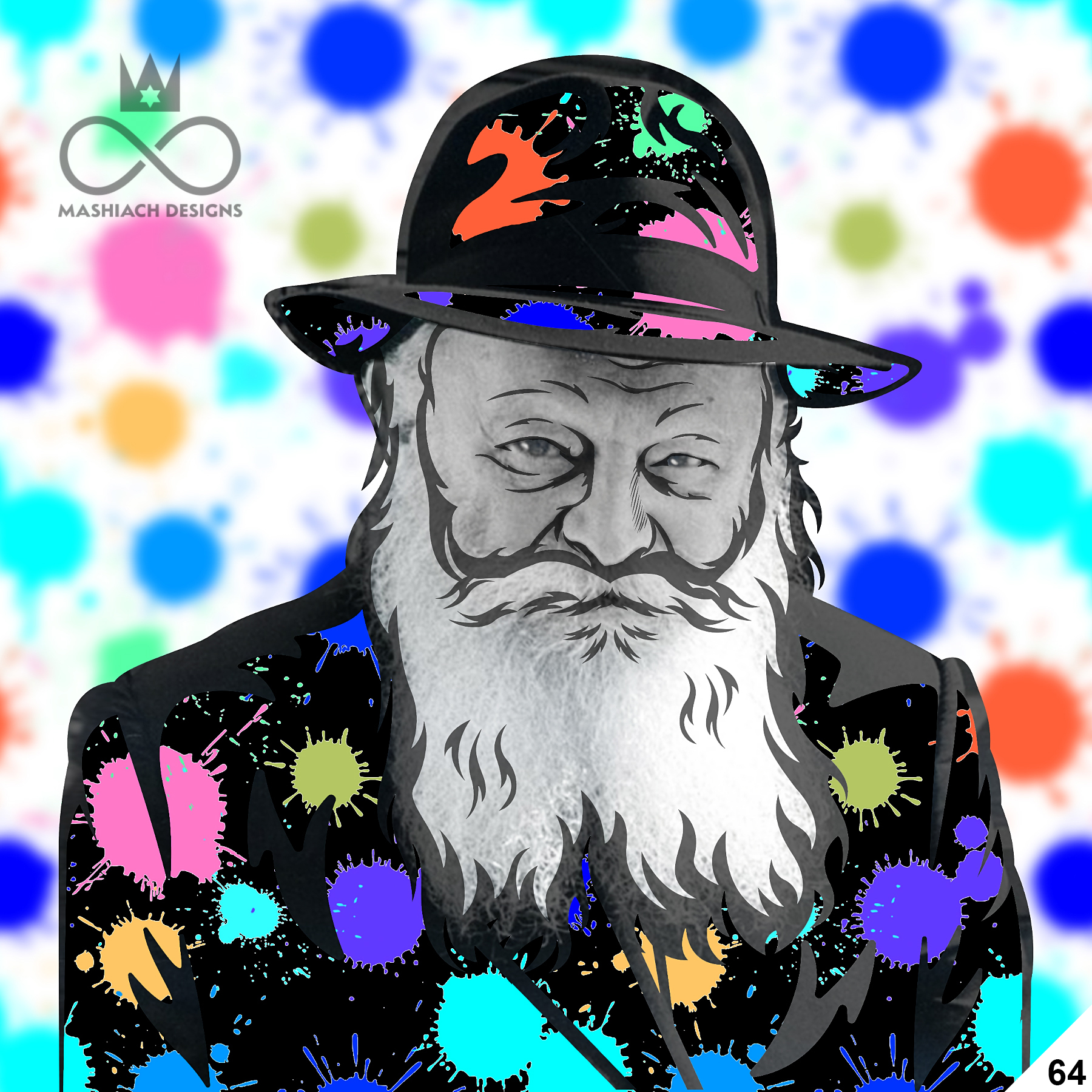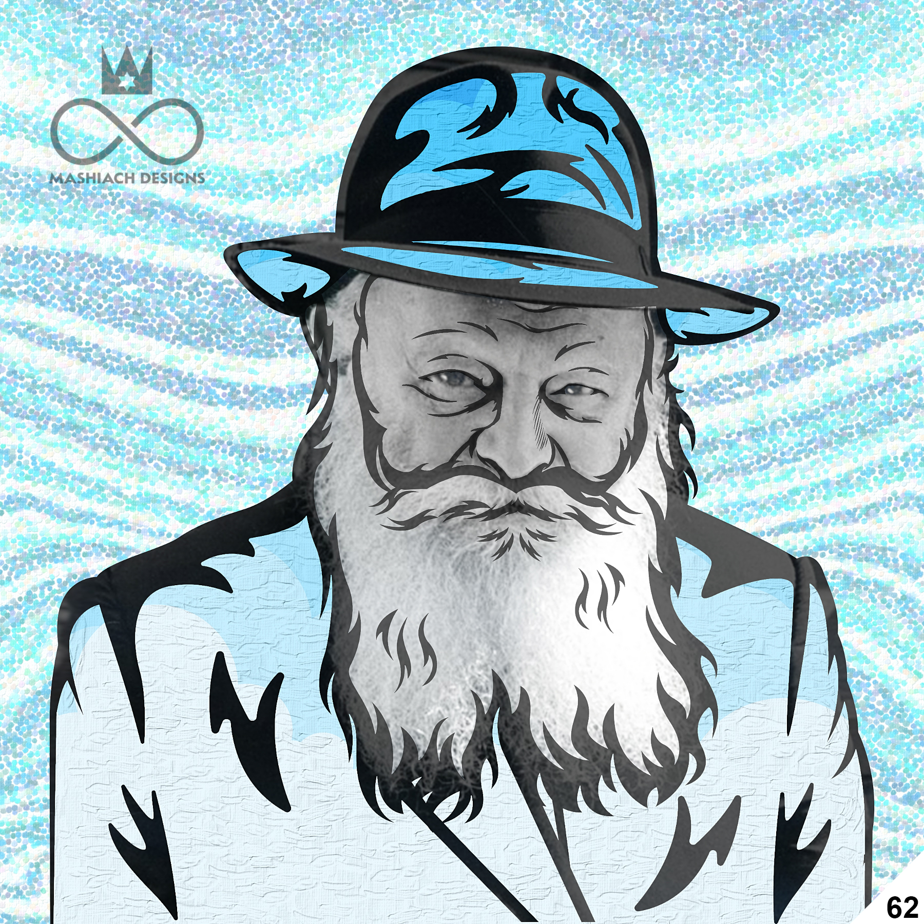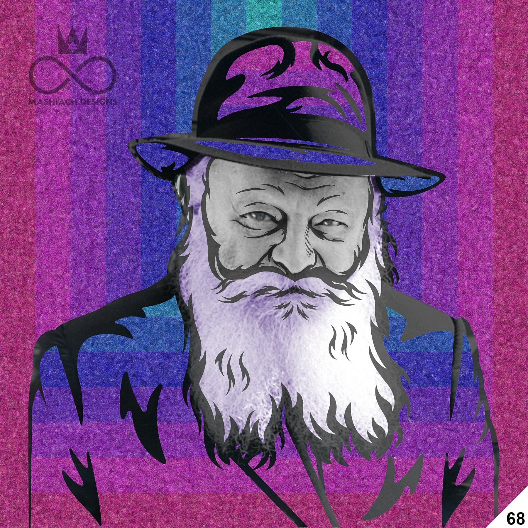 This series reimagines the Rebbe through repetition, color, and variation, echoing the visual language of pop art while rejecting exclusivity. Each image is the same and different at once, familiar yet transformed through pattern, texture, and palette.