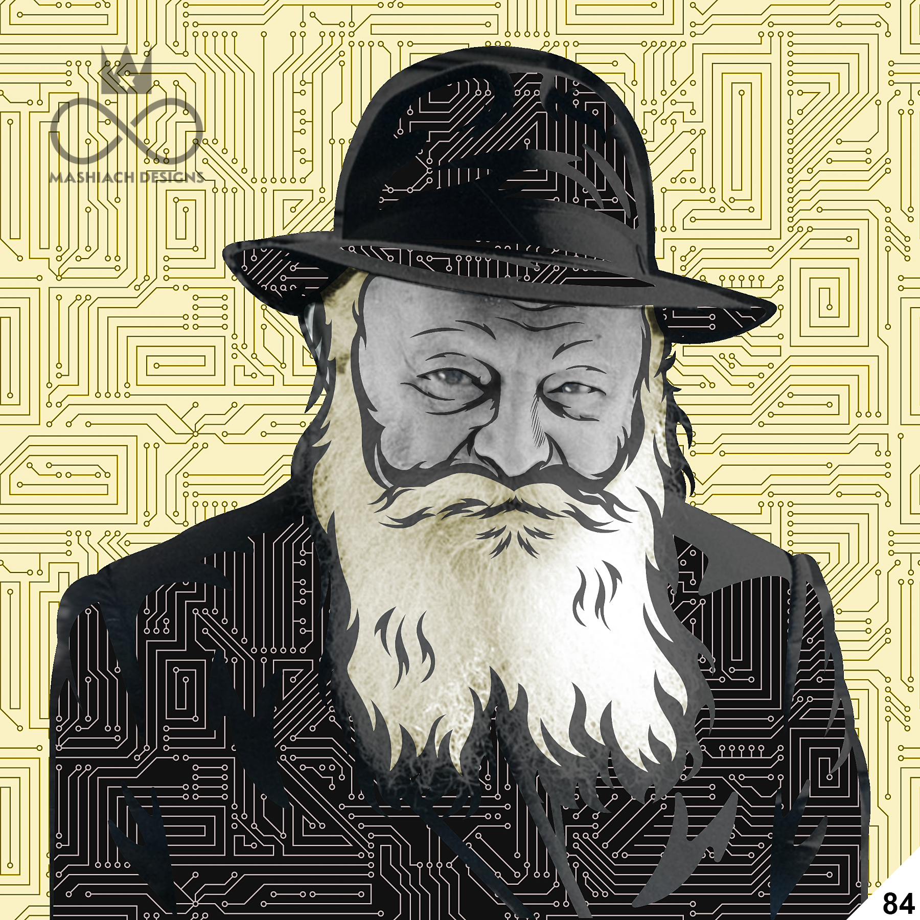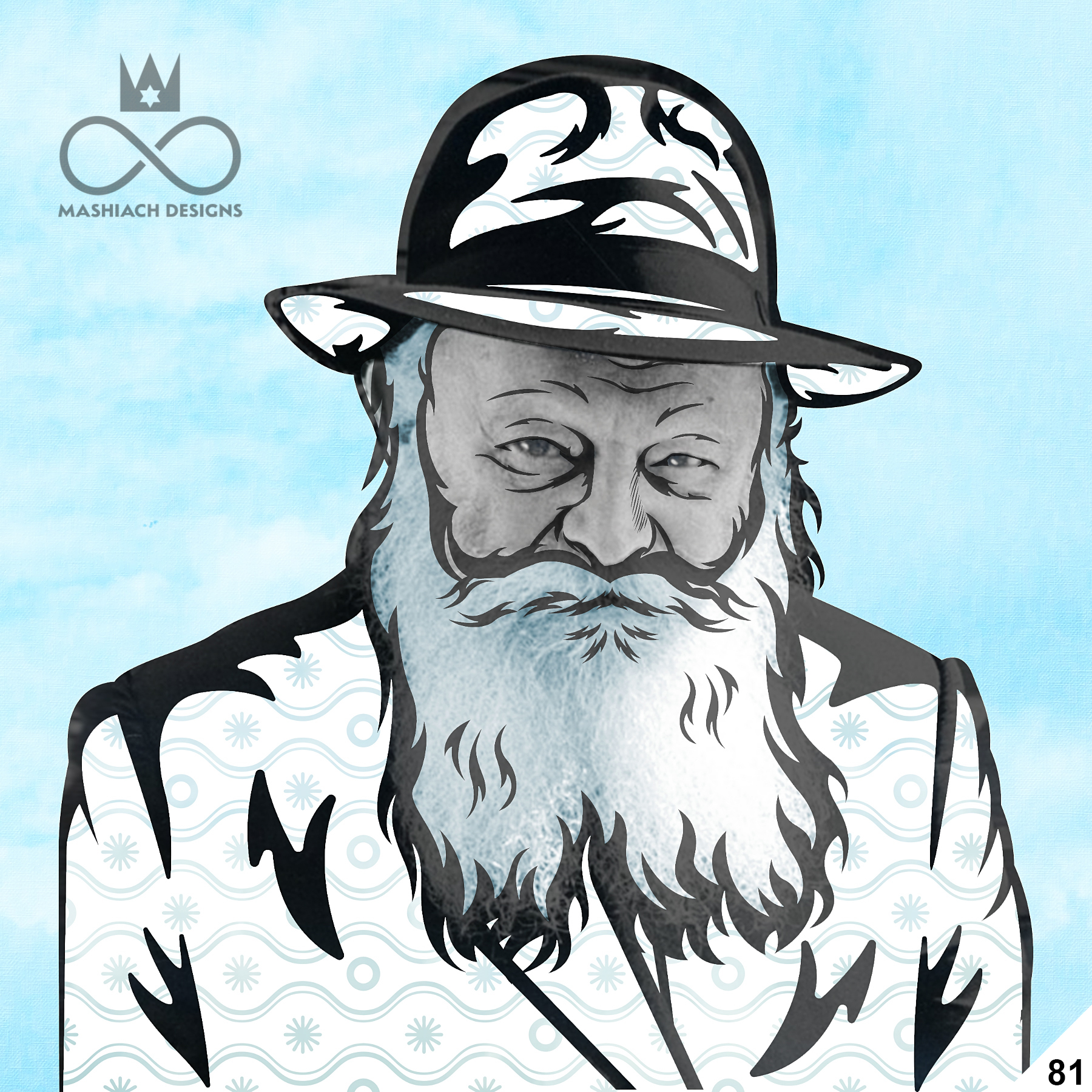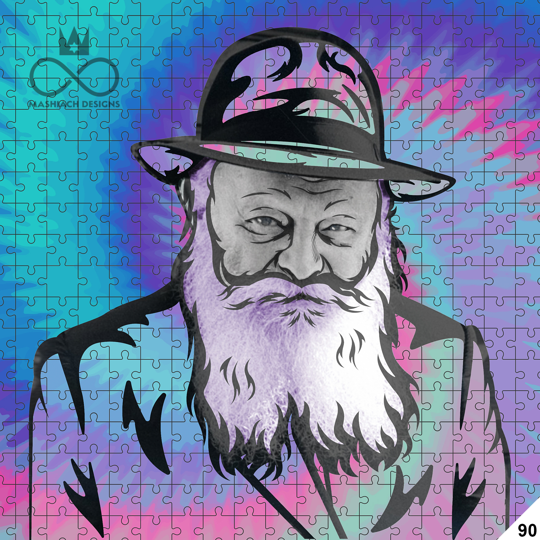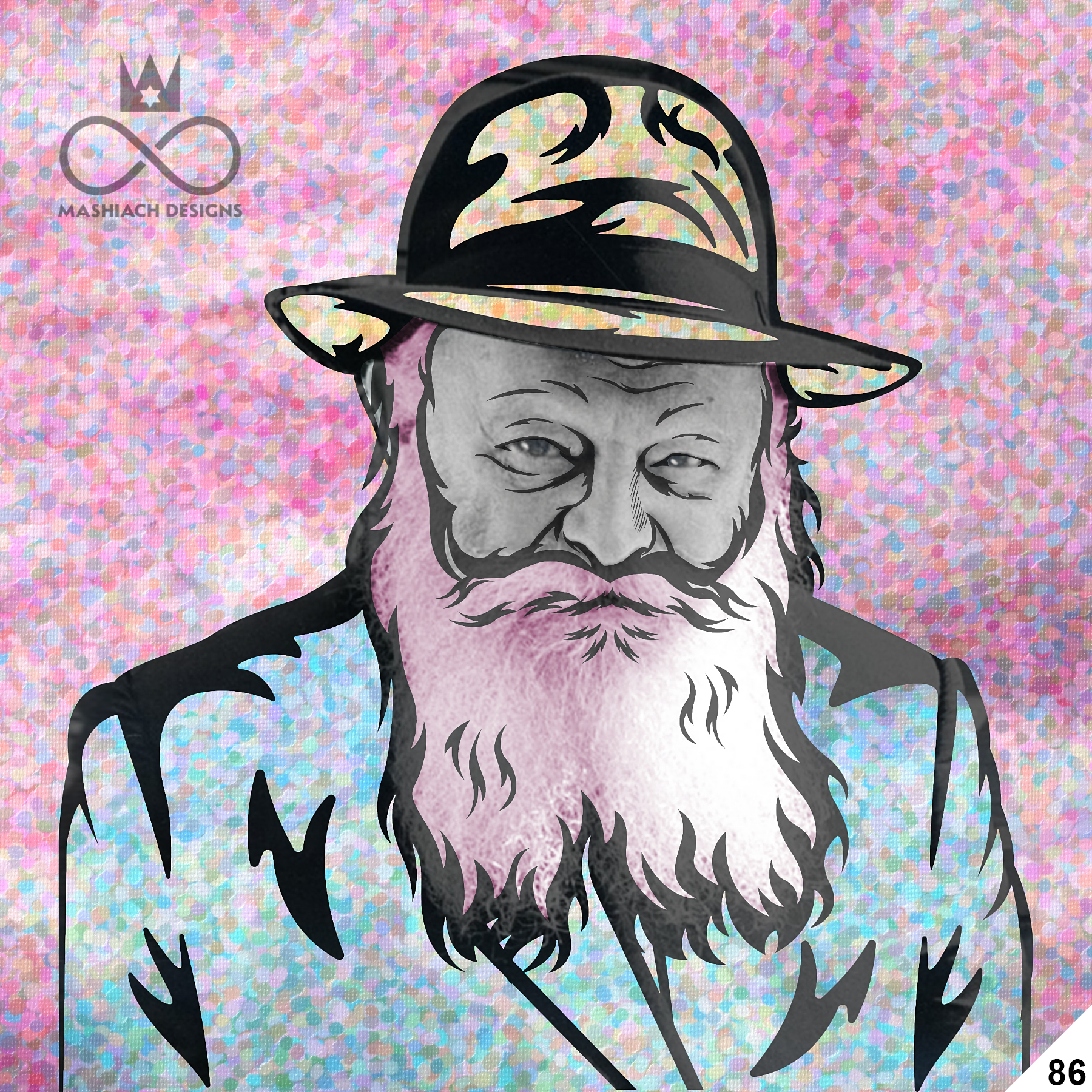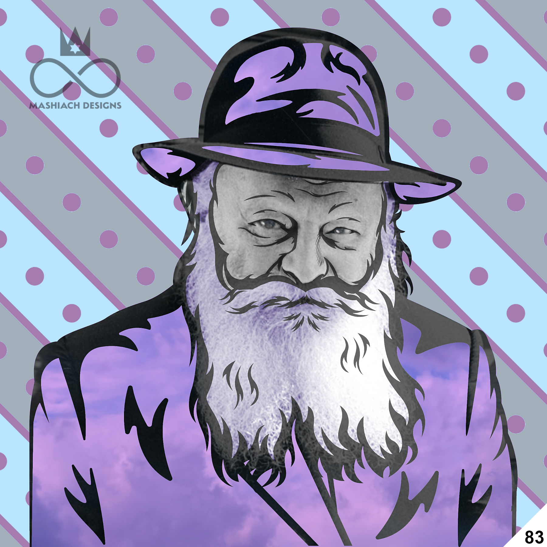 This series reimagines the Rebbe through repetition, color, and variation, echoing the visual language of pop art while rejecting exclusivity. Each image is the same and different at once, familiar yet transformed through pattern, texture, and palette.