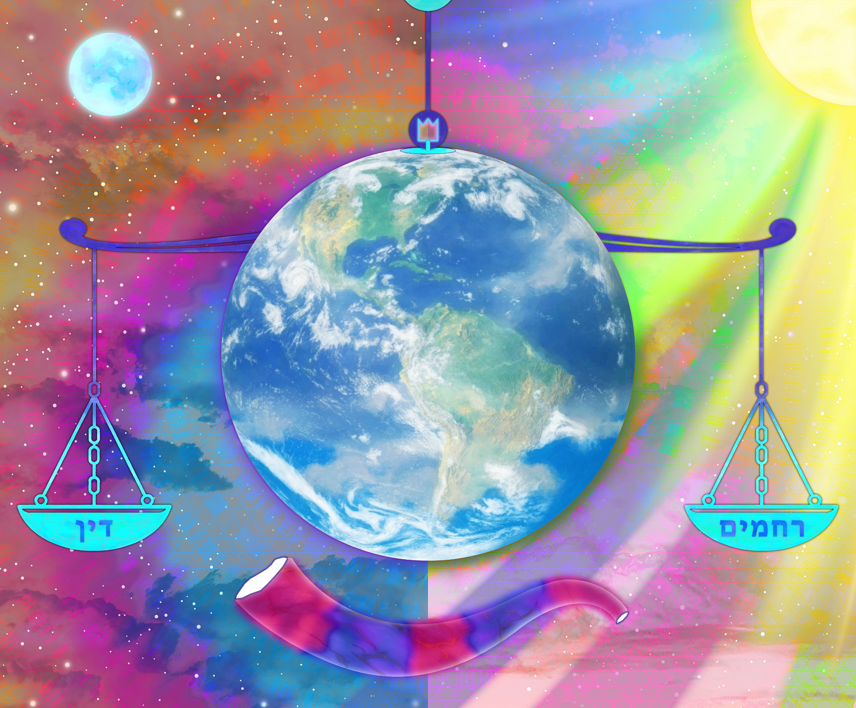This work centers on the world held in balance, where opposing forces are measured and sustained through a precise equilibrium. The imagery reflects the dynamic between דין and רחמים, judgment and mercy, showing how both operate simultaneously as the world is continuously weighed.